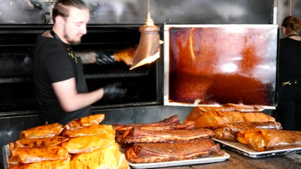 Und nur damit keine Missverständnisse entstehen: Vollgepackte Teller mit Fleisch, Pommes und Coleslaw erwarten die Gäste hier nicht. Vielmehr spielen raffinierte Aromen und pfiffige Rezepturen eine größere Rolle als das Volumen des Tellers. Trotzdem versprochen: Wer sich etwa das Beef Brisket mit Mustard Barbecue oder die unverschämt locker vom Knochen fallende 30-Days-Dry-Aged-Beef-Rib einverleibt, wird keinesfalls hungrig den Laden verlassen.
