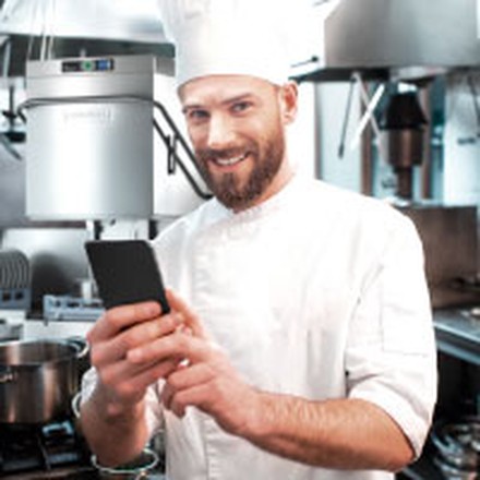 Mit der App von Hagleitner ist der Gastronom seiner Spülmaschine stets einen Schritt voraus: Sie informiert u.a., wenn