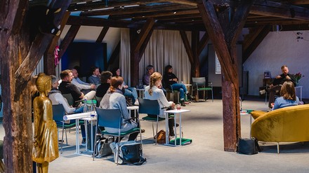 So befindet sich die Simmeth-Akademie nun im Dachgeschoss praktisch „eingebettet“ in das Original-Gebälk des alten Sichtdachstuhls. Das sorgt dafür, dass man hier nicht nur Geschichte schreiben, sondern auch erleben kann.