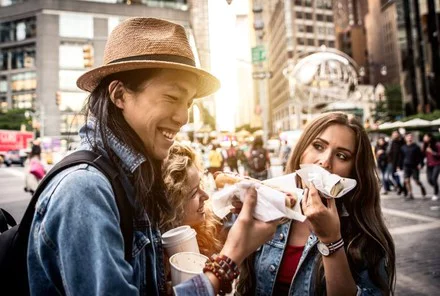 Mit „Street Food Nummer Eins in Deutschland“ wirbt der Stand „Berlin Currywurst“ im Chelsea Market in New York, Ableger eines Restaurants aus Los Angeles. An den Wänden hängen Fotos von der Berliner Mauer und – natürlich – von einem innerdeutschen Grenzübergang mit dem Straßenschild: „You are leaving the American sector“. An Berliner oder Hamburger Originale reicht die Currywurst hier auf jeden Fall heran. „Das war schon nah dran“, sagt Rita Henrichs, die aus Bielefeld zu Besuch ist. Deutsches Street Food sei ähnlich deftig wie das in den USA, sagt Henrichs. „Das können die schon mit ihrem Gaumen vereinbaren.“