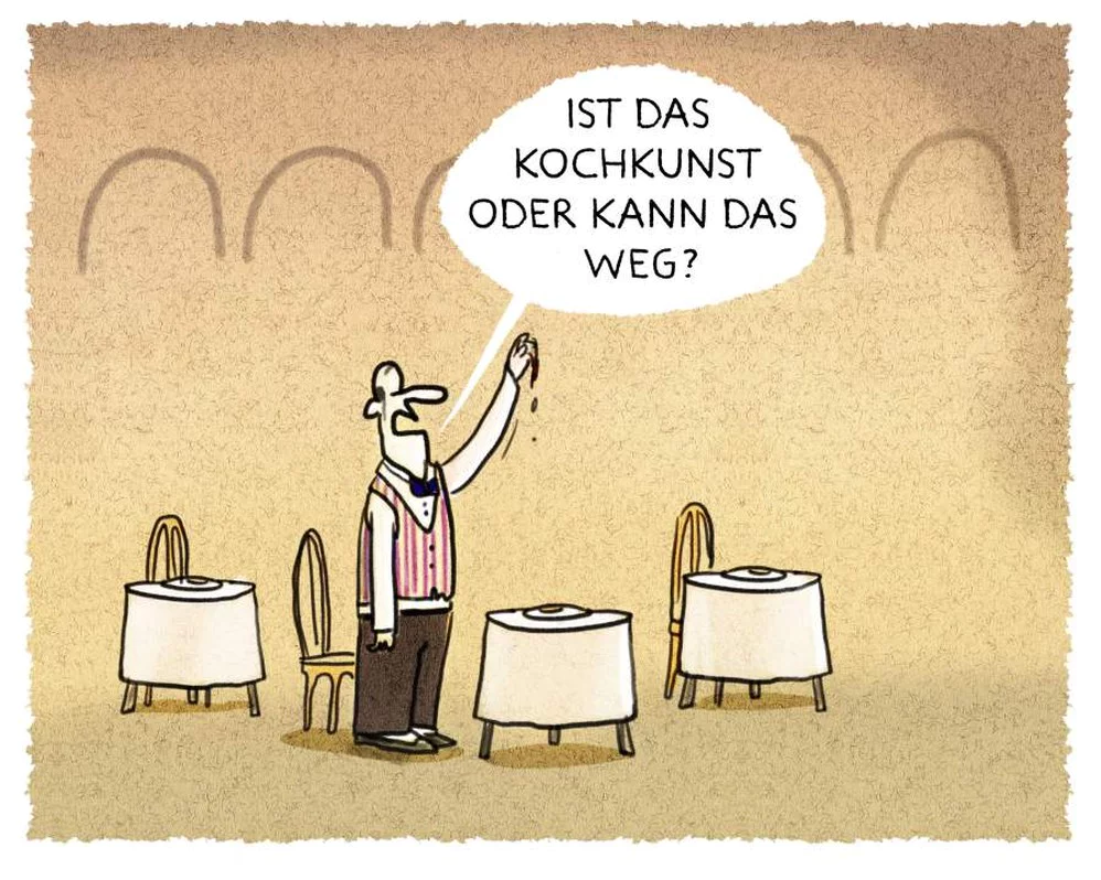 Wenn der Gast das Essen zurückgehen lässt, weil er es (angeblich) ohne eine spezielle Zutat bestellt hat: „Kein Problem, ich lass Ihnen sofort ein neues Gericht bringen.“