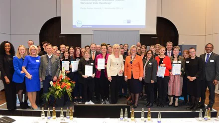 Bayerns Arbeitsministerin Ulrike Scharf und „Dehoga Bayern“-Präsidentin Angela Inselkammer übergaben ferner die Zertifikate "Kleiner Wirtebrief – Zukunft trotz Handicap“ an acht junge Menschen mit Handicap, die ihre berufliche Zukunft in der Gastronomie gestalten möchten.