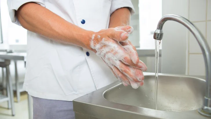 Da Hände überall mit Krankheitserregern in Berührung kommen können, ist in der Gastronomie gründliches Händewaschen mit Seife und warmem Wasser und anschließendes Abtrocknen mit Einweghandtüchern unabdingbar. Dies beugt die Übertragung von Keimen auf Lebensmittel vor.