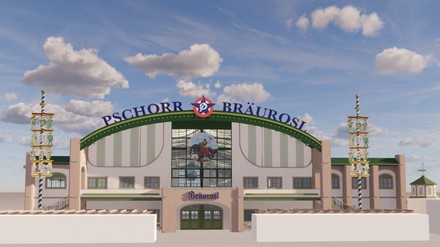 Seit 121 Jahren ist die Pschorr Bräurosl eine echte Institution auf der Wiesn und dort nicht mehr wegzudenken. Jetzt wird das Zelt komplett neu aufgebaut und erscheint in der Außenansicht moderner und frischer, aber erinnert gleichzeitig an das historische Vorbild um 1901.