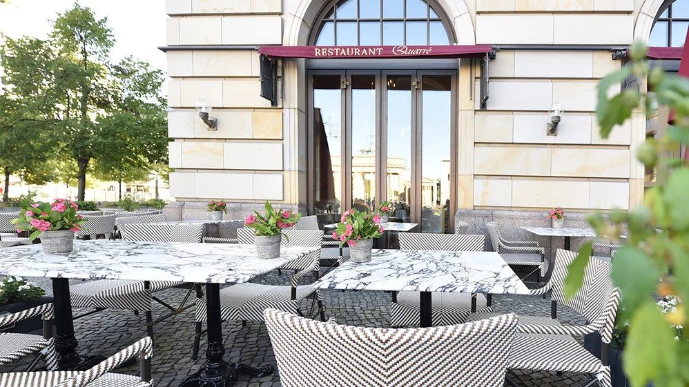 Die Brasserie Quarré im Hotel Adlon Kempinski Berlin hat ihre Terrasse neu eröffnet. 126 Sitzplätze, elegante Bistrotische aus Calacatta Viola Marmor und handgefertigte Outdoor-Stühle sollen eine Atmosphäre schaffen, die vom Pariser Boulevard inspiriert ist.